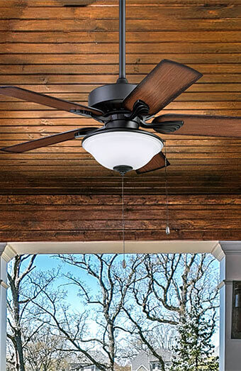 Installation of IP-rated weatherproof ceiling fans for decks, patios, and verandas, built to withstand coastal air, humidity and other outdoor conditions.